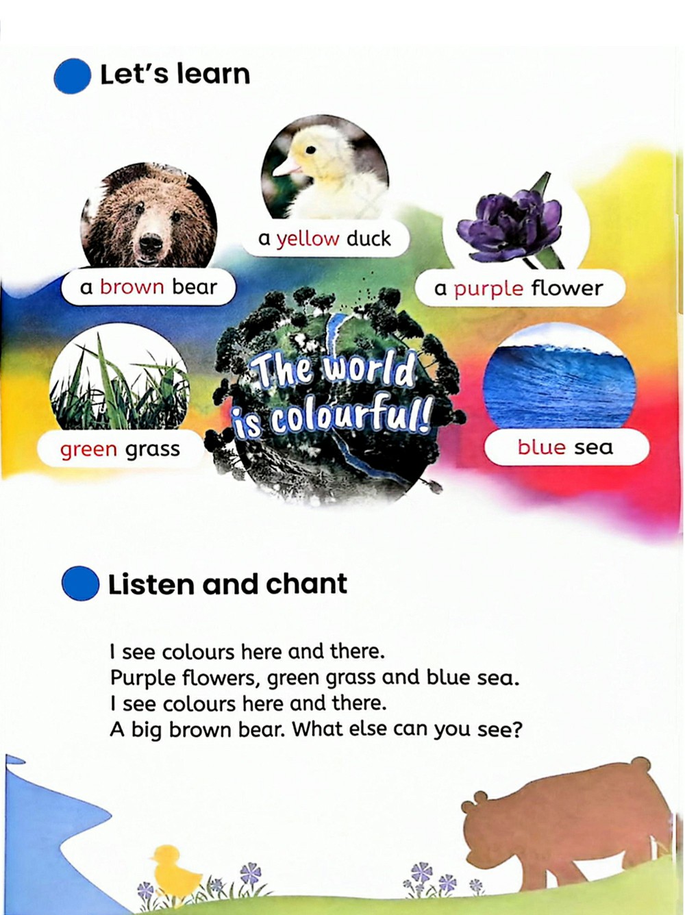 我看见到处都是颜色。 一只棕色的大熊。你还能看到什么?