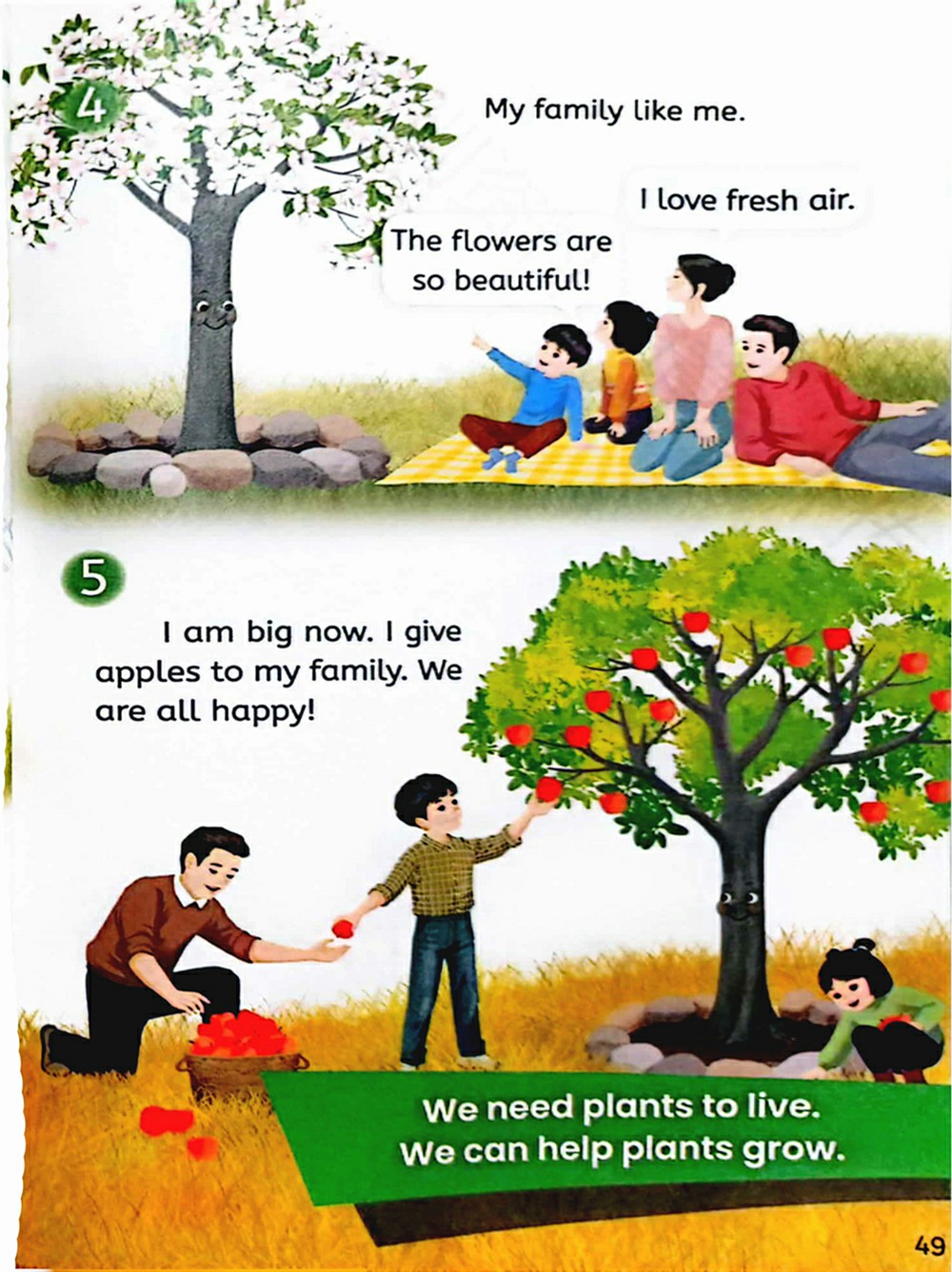 我现在长大了。我把苹果送给 我的家人。我们都很高兴!