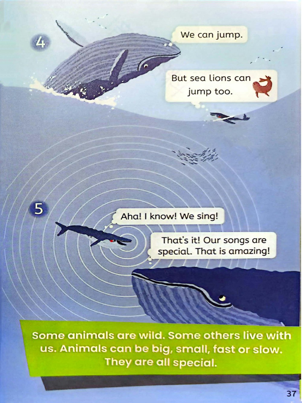 有些动物是野生的。还有一些和我们生活在一起。 动物可以是大的 小的 快的 或慢的。它们都是特别的。