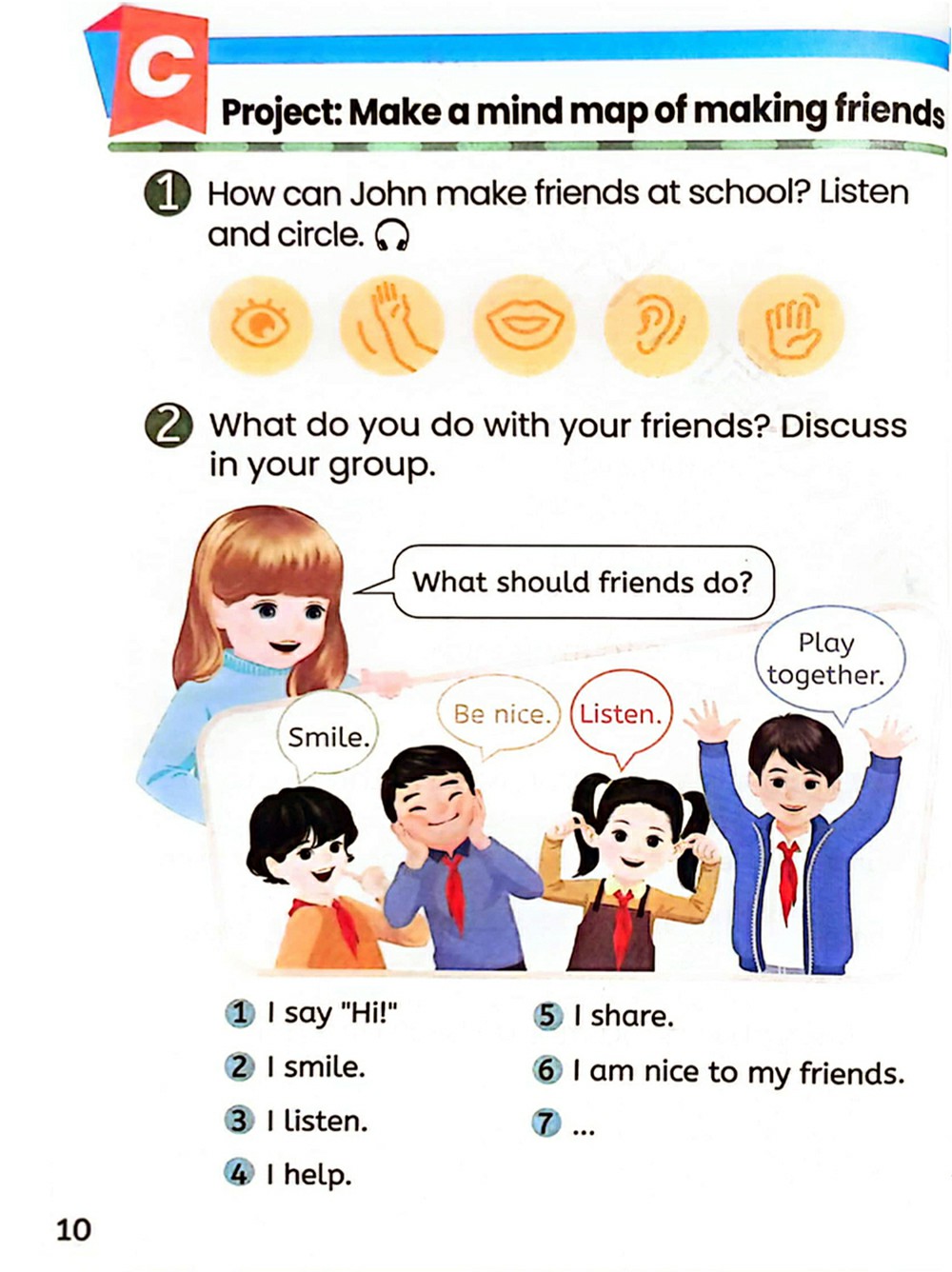 约翰在学校里如何交朋友? 听一听并圈一圈。