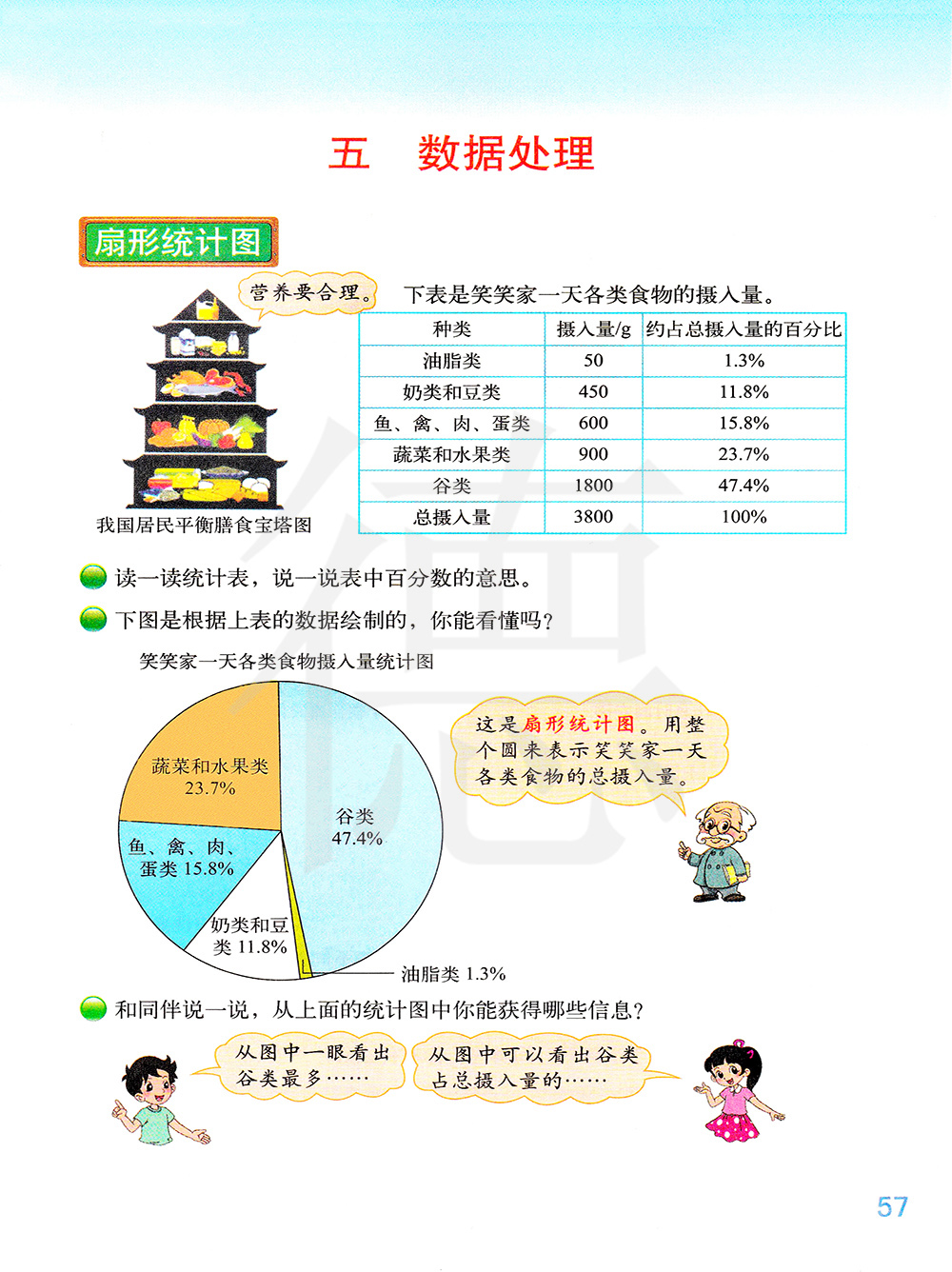 )统计图比较好,反映笑笑家食品支出占全部支出的多少,最好用扇形统计图。