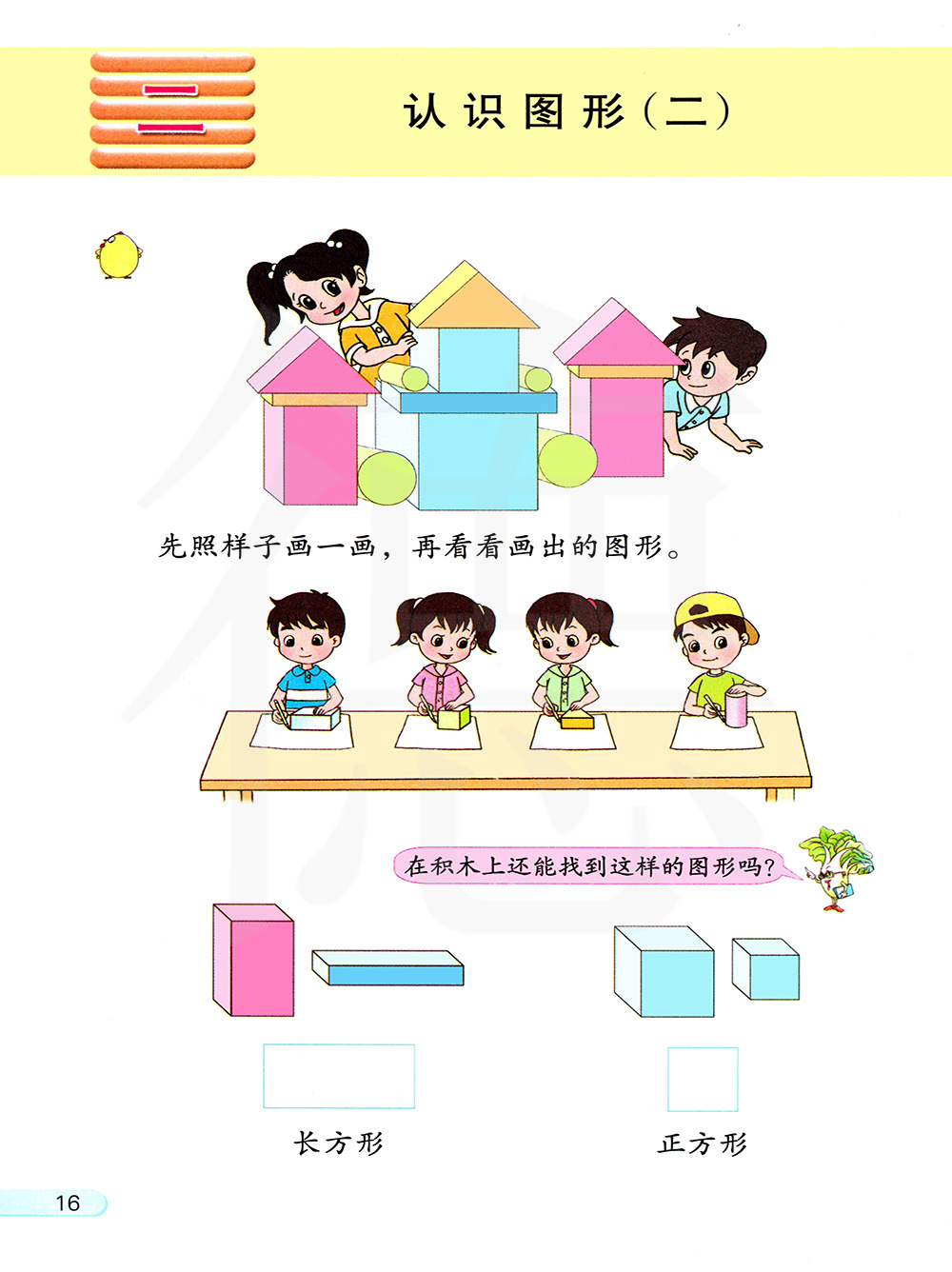 2.知道用长方体 画出长方形;正方体 画出正方形;三棱柱 画出三角形;圆柱 画出圆【课本16至20页的内容务必掌握】