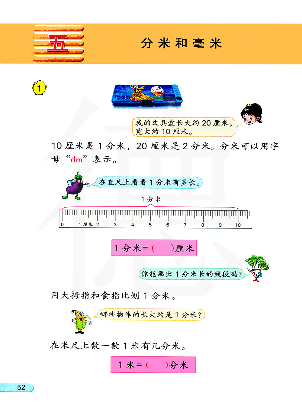 1.长度单位:毫米(mm) 厘米(cm) 分米(dm) 米(m)